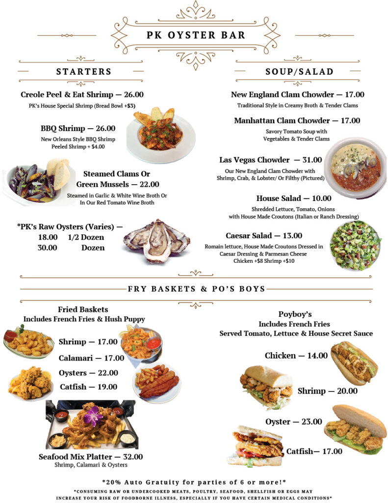 $20Plump oysters coated with our house seasoned flour served with french fries