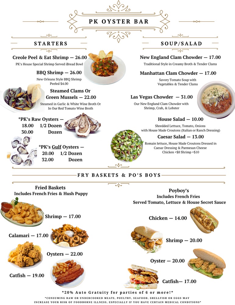 $20Plump oysters coated with our house seasoned flour served with french fries