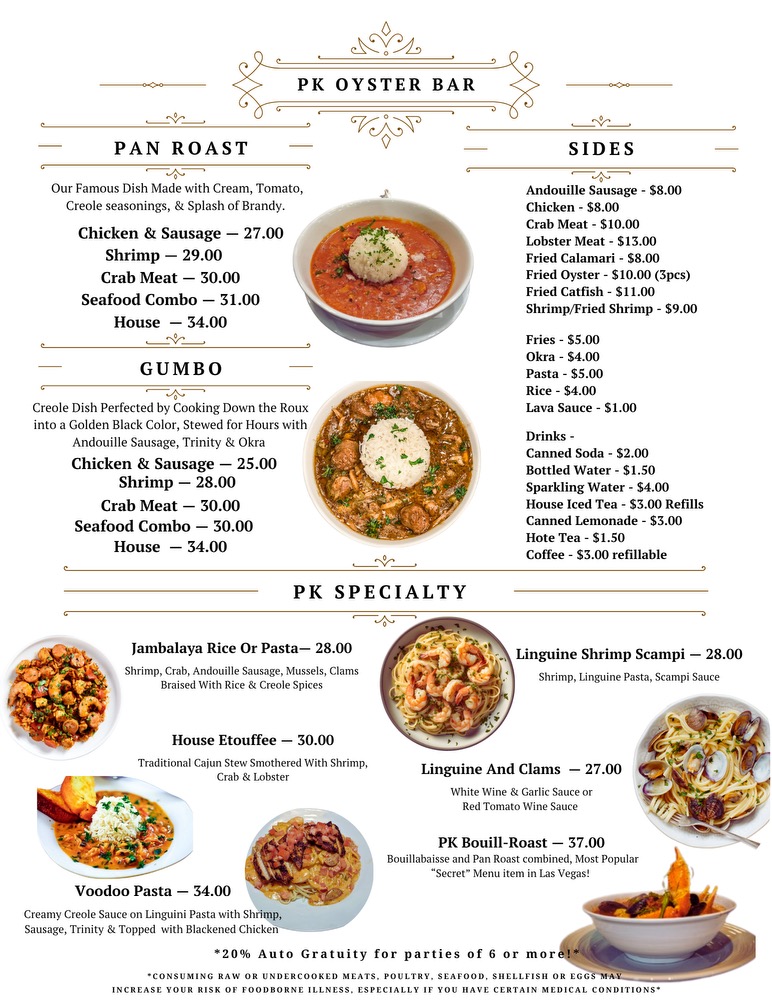 32Cajun dish perfected by cooking down the rue into a golden black color, stewed for hours with trinity and okra. Shrimp, Crab, Chicken and Sausage